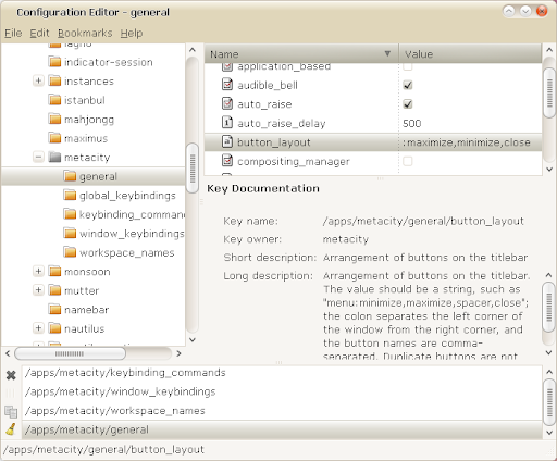 To fix it, press Alt + F2, enter: "gconf-editor", then navigate to apps > metacity > general, look for the "button_layout" key and change it to ":maximize,minimize,close" like in the screenshot below (thanks to Vadim Darth Alimguzhin for the tip!):