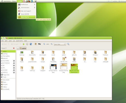 -Metacity theme of Aquadreams and Ubuntu Sunrise is now based on the new Ubuntu Radiance theme: