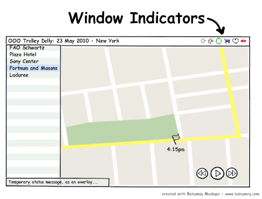 Window Indicators will be just like the current Panel Indicators: they will have an icon which indicates the state and clicking it brings up a menu.