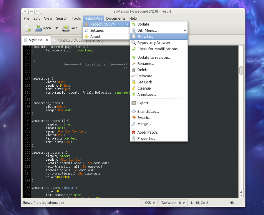 Sure, you can always work with SVN repositories from the command line but sometimes a graphical SVN client is more convenient - for example you can use it to check which files are not added to the repository yet. And when it comes to graphical SVN clients, I'm sure most of you will agree when I say that RabbitVCS, a "set of graphical tools written to provide simple and straightforward access to the version control systems you use" inspired by the famous TortoiseSVN, is probably the best such tool for Linux.