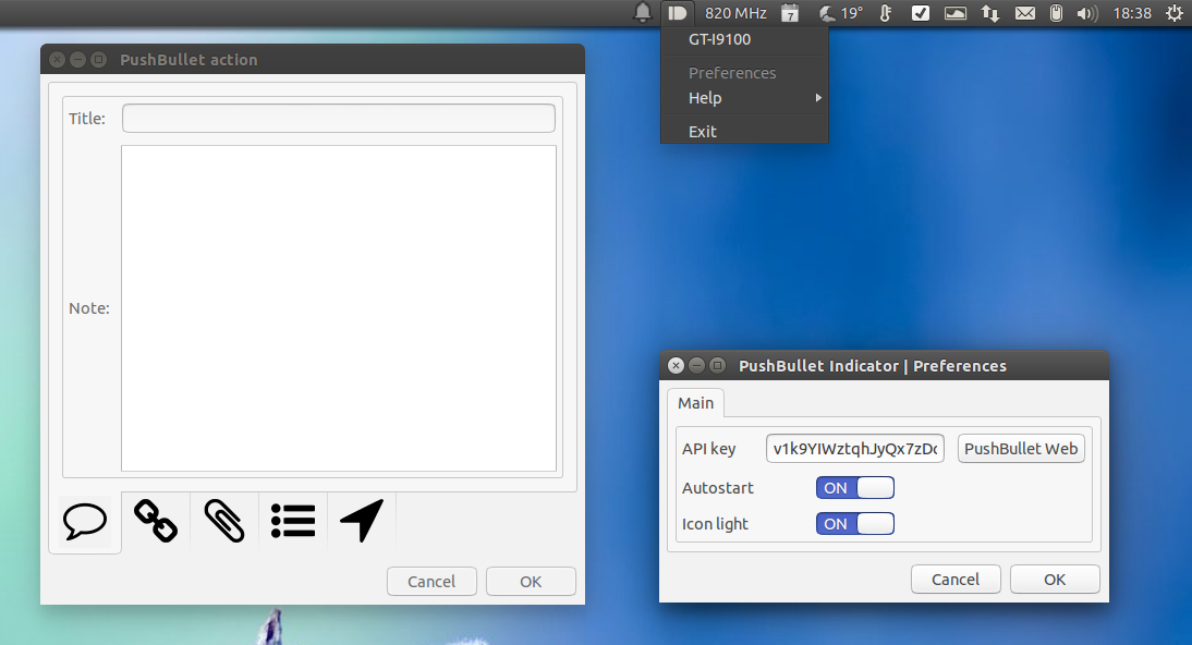Update 16 July, 2014: Pushbullet Indicator now supports OAuth, notification mirroring from Android devices to your desktop and sending files from mobile devices to the desktop.