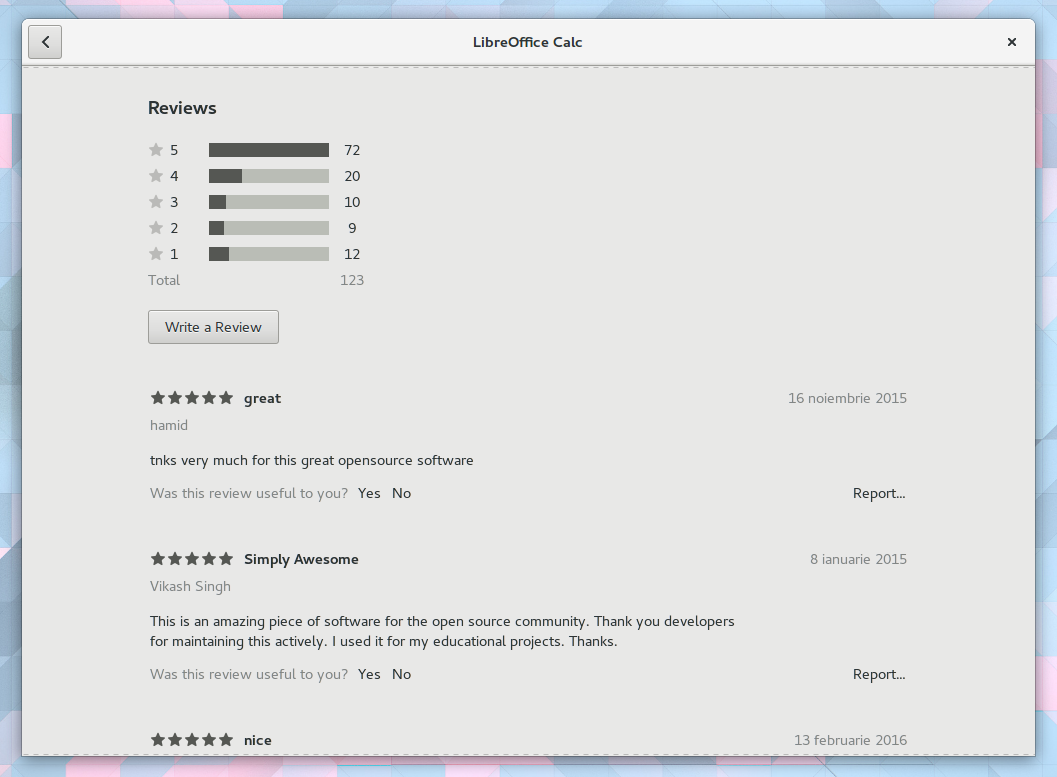 Note that for the screenshot above, I've used the Ubuntu-patched GNOME Software because it's the only way to see the user reviews in action at this point, at least as far as I'm aware of.