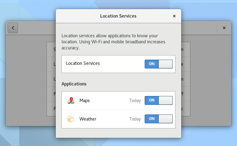 With GNOME 3.20, users have more control over the location services. Until now it was possible to either enable or completely disable the location services however, with this release, access to location services can be decided on a per-application basis: