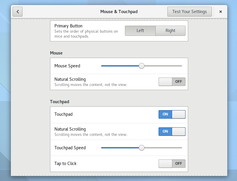 That's not the only Settings module that was improved for this release. Mouse & Touchpad preferences was overhauled to make it easier and quicker to locate the relevant settings. The touchpad settings are only displayed if you have a touchpad for instance, and more explanations are provided: