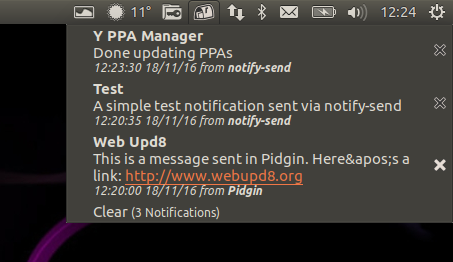I've covered Recent Notifications before, however, the last article on WebUpd8 dates back to 2011, so I decided to post another article about it (and redirect the old ones to this one), especially since the indicator changed / improved since then.