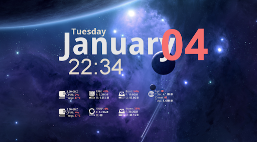 make install./conky-colors -l en -c proton -cpu 2 --updates --calendar -m --hd --network --ubuntufc-cache -v -fconky#!/bin/bash
